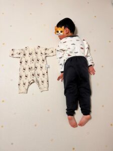 かつて大きく感じた60cmのベビー服が、今ではすっかり小さく見えるほど。月日の流れや成長の速さを実感できる、印象的なビフォーアフターです。
