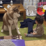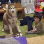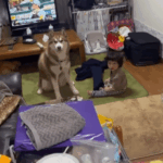 • 兄弟のように育ってきた9ヶ月息子とハスキー犬。しかし…ばあばに怒られた直後、2人のまさかの行動に「そっくりだな」「コントか」