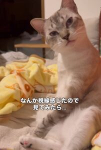 リビングで寛いでいた女性「何か視線を感じる」→ふと、隣を見てみると…”まさかの光景”に「wwww」「ジワジワくるw」「なーんだ人間か」