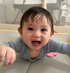 最近の息子さんは、知らない人を警戒することもあり、おもちゃで遊ぶ一方、ママさんが戻ると服をつかんで寄ってくる甘えん坊です。妊娠中、胎動が強く「蹴られるとお腹が尖った」と話すママさん。生まれてからも「足が強いね」と言われ、当時を思い出すといいます。