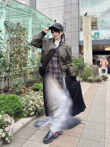 投稿者のクエさん(@syokupan_natto)が私服の写真をXに投稿すると、まさかの乱入者が…。