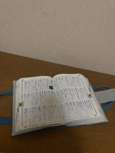 パパさんは、小学3年生の息子さんのために国語辞典のカバーを手作りしました。教室の机の横にぶら下げられるよう、一体型のデザインを考案したといいます。