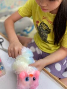 現在11歳の娘さんは、7歳のころからぬいぐるみ作りを続け、今もぬいぐるみ職人としてさまざまな作品を手がけています。時間があれば何かを作り、絵や工作も大好きで、よく作品をプレゼントしてくれるそうです。