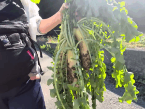 散歩中に突然渡された葉付き大根