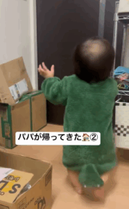 パパさんが残業の日以外は、欠かさず駆けつけ、朝もパパさんの出勤時には玄関まで見送り、抱っこをしてもらうルーティンがあるそうです。