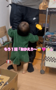 仕事で疲れて帰ってきたとき、我が子が玄関まで駆け寄ってくる。そんな瞬間は、まさに疲れが吹き飛ぶ時間ですよね。ママさん(@shoronpoooooo123)が、パパさんのお出迎えシーンをTikTokに投稿すると「これがいいのよねー」「疲れも一気に飛びますね」「早く帰りたくなりますね」などのコメントが寄せられ、話題になっています。いったいどのようなお出迎えだったのでしょうか?
