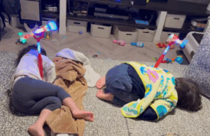 予想外の光景に思わず笑ってしまったというママさん。しかし、肝心の2人にはまったく効き目がなかったため、ゆすって起こすことにしたのだとか。