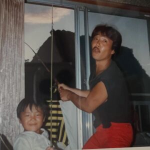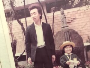 @akoriki8mamaさんは、両親が18歳のときに生まれました。幼い頃に一緒に写った写真を眺めながら「やんちゃな父の時代です」と振り返ります。