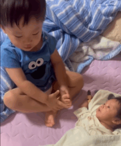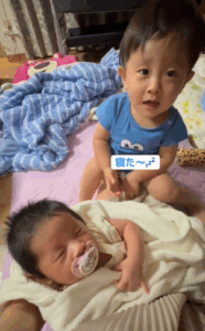 動画に映っているのは、撮影当時1歳10ヶ月のお兄ちゃんと、生後3週間の妹さんです。