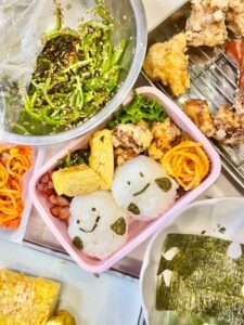 当日の朝、いつもより少し早起きして、お弁当作りを見に来たという娘さん。開口一番「かわいい」「嬉しい」「美味しそう」と満面の笑みを見せてくれたといいます。