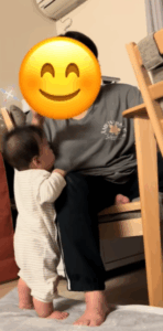 普段は「ママ!ママ!」と離れない娘さんですが、その日は状況が一変。ママさんと遊んでいても、数秒後にはキッチンで料理をしているおばあちゃんの足元に移動します。