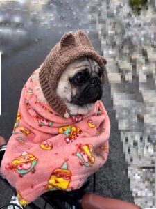 防寒対策をした茶々丸くん(@chachamaru_pugさんより提供)