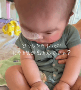 息子さんは現在1歳3ヶ月で、病気の影響で成長はゆっくりですが、毎日のリハビリや通院をしながら過ごしています。経管栄養のチューブによる医療的ケアが必要ですが、最近は児童発達支援や医療型短期入所施設を利用し、楽しそうに療育を受けているようです。