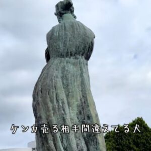 じっと前方を見つめながら低くうなり、ときどき「わふっ」と威嚇するような声まで…。いったい何に怒っているのかと思いきや、その相手は公園の真ん中に立つ大きな“銅像”だったのです。