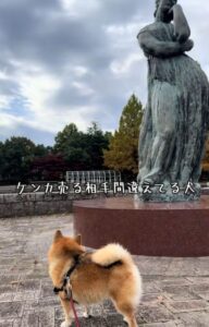 あずきちゃんがこの銅像を見たのは初めてで、銅像に対してこのような反応をしたのも今回が初めてだったそうです。ところが、銅像から離れるとすっかり落ち着き、散歩を再開。