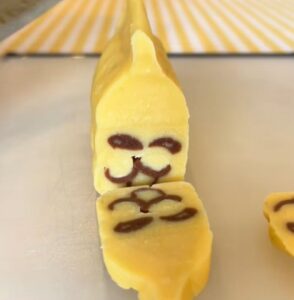 クッキー作りで特にこだわったのは、頭と口の部分。頭はキャラクターのトレードマークだったため、指先で丁寧にとがらせたそうです。また、口は図書館で借りたアイスボックスクッキーのレシピ本を参考にしながら成形したのだとか。