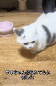 一方、見つめられているサリーちゃんはとぼけた表情で、何に対して怒られているのか見当もつかない様子だったそう。