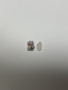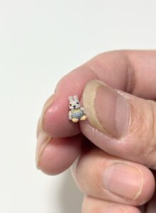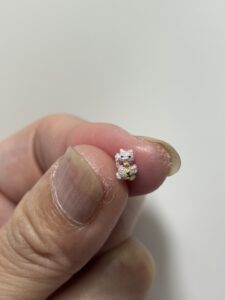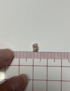 2日ほどかかって完成した招き猫の大きさは、なんと3mmほど。米粒と同じくらいの大きさで、驚くほど小さな招き猫となりました。