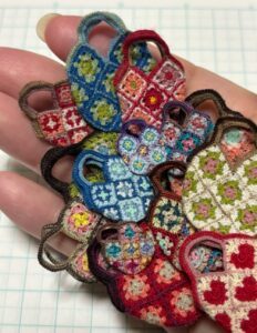 幼い頃はセーターの裁断クズをほどいては編んで遊んでいたそうで、置き場所に困った結果、作品がどんどん小さくなっていったのだとか。
