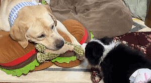 ノアくんがルナちゃんを制止するのは初めてで、いつもと違う2匹の様子に気付いた@Mary59Noah33さんが撮影しました。普段はルナちゃんを@Mary59Noah33さんが抑えており、ノアくんはその様子を観察していたのかもしれません。