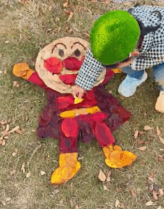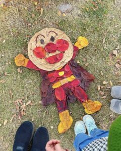 今回XやThreadsで注目を集めたのは“落ち葉でできたアンパンマン”。