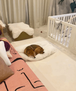 赤ちゃんの寝床に陣取る?!
