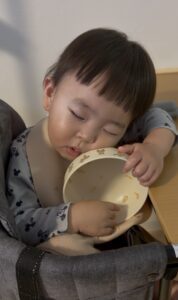 最近、印象的だった出来事を聞いてみると「ご飯を食べている最中に寝てしまうことです」と話すママさん。