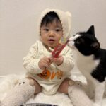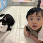 ママさんにくっついて寝る2人(@louis3.luna1さんより提供)