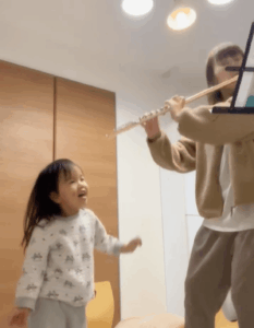 もともと音楽が大好きで、フルートによるリトミックレッスンの先生を務めているママさん。退屈していた娘さんを楽しませようと、大好きなアニメ映画の音楽を演奏してみることに。