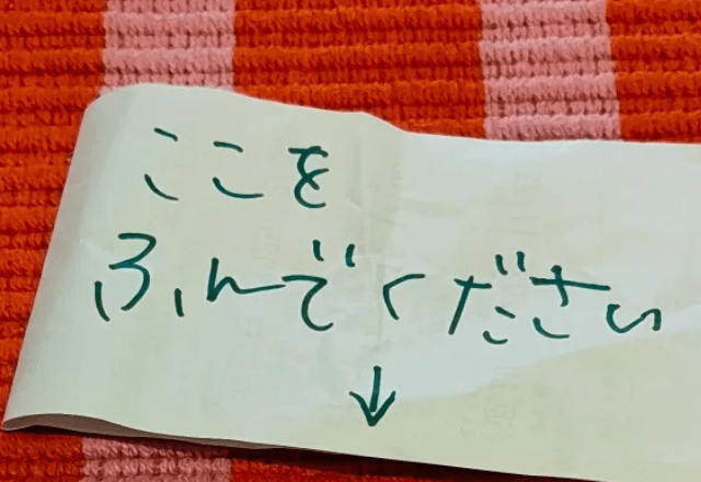 • 「ここをふんでください ↓」4歳息子が玄関に残したメモ。指示通りに踏んでみると…まさかの展開に「巧妙な罠…!」「地味に痛いやつ」