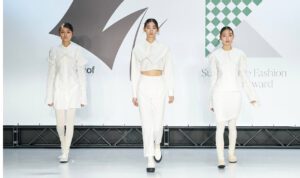 「出場者は服飾系の学生ばかりで、正直無理だと思っていました。私は裁縫とかできないので、感覚でこういうデザインがいいのではないかと意見を言い、それを仲間の大学生が形にするという役割分担でした。期間中はとにかく必死で取り組んでいたので、あまり覚えていないことが多いです。自分自身がデザインしたものが、最終審査で実際にプロのモデルさんが身につけてランウェイを歩く姿を見て、本当にファッションになっているんだ、と感動しました。また、汚れを受け入れるというコンセプトだったので、あえて真っ白なデザインにしたんですが、それがかっこいいと評判でしたね」