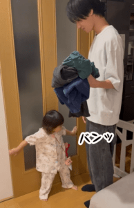 この日も、やむなくママにバトンタッチして家を出たお兄ちゃんを、いろはちゃんは不満そうな顔で見つめていたそうです。