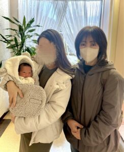 この日、息子さんは 3日間おばあちゃんの家で過ごしたあと、自宅まで送り届けてもらいました。自宅でもしばらく遊んでもらい、最後は家族でおばあちゃんを玄関まで見送りに。