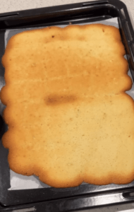 しかし、焼きあがった天板を見て愕然。50枚になるはずの生地がすべてつながり、1枚の巨大な板状クッキーに…。