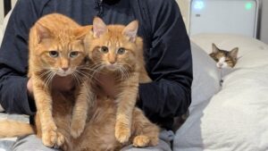 また、ぽわげくんの後に保護した生後3ヶ月の子猫に、手加減しながら取っ組み合いをしてあげているといいます。投稿者さんは、今後も猫ちゃんたちと「健康で楽しく過ごしていきたい」とコメント。