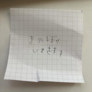 その後、打ち合わせが終わってテーブルの上に目をやると、そこには息子さんが残した置き手紙が…。