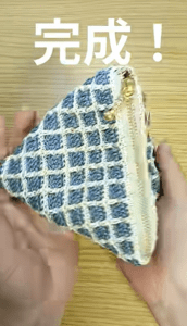 編み方のベースは、これまで作っていた平たいポーチと同様。同じ工程でもまったく異なる完成品を見て「全然違う形に作れちゃう不思議」を投稿者さんは振り返ります。