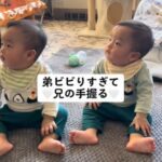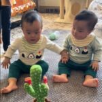 • 生後10ヶ月の双子。2人の前に“サボテンのおもちゃ”を置くと…直後、尊すぎる展開に「さすが双子」「かわいすぎです」「兄貴カッコいい」