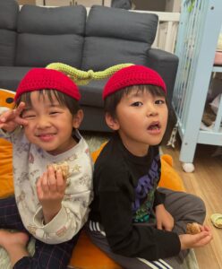 そこで、2歳になったお子さんたちに帽子を被せてみようとしましたが、二人とも「イヤイヤ」と被ってくれませんでした。すると、6歳の長男さんと4歳の次男さんが「被りたい」と言って被ってくれたのです。