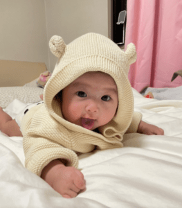 投稿された現在の写真には、可愛らしい娘さんの姿が映っていました。パパさんは「高校生からの知り合いで、まさかこんな可愛い子が生まれる未来があるなんて」と出会いの尊さを感じます。