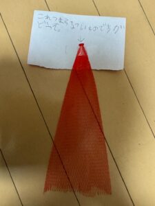 「サンタさんに僕の宝物をプレゼントする」と言い、お手紙付きの三角ネットを@ins.t1098さんに見せてきました。