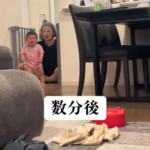 • お風呂上がりで上機嫌な1歳娘だったが…次の瞬間、背後にいた“初めて見る姿のパパ”に「一気に急降下」「こわいよね」