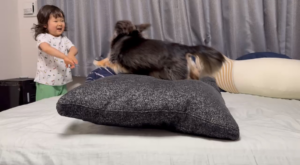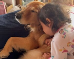 かつて赤ちゃんだった娘さんの隣でお昼寝をしていたこうちゃんは、今では2人の子どもたちにとって欠かせない遊び相手であり、良き理解者です。