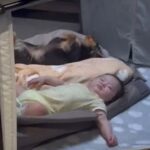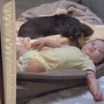 • 仰向けでお昼寝する赤ちゃんと犬。しかし次の瞬間「ホントに犬?」思わずツッコんだ愛犬の行動に4.6万いいね。それから1年後の様子を聞いた