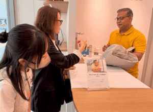 2025年4月には、レザーバッグや革小物の生産をおこなっているバングラデシュの自社工場「マトリゴール」(ベンガル語でマザーハウス)の工場長が「ミナモア広島店」を訪問!店頭で直接、バッグのメンテナンスを行うなど、バッグを通して、生産者と販売者、お客様がつながる場を作ることができ、ローカルとグローバルの架け橋となった実感が持てた。