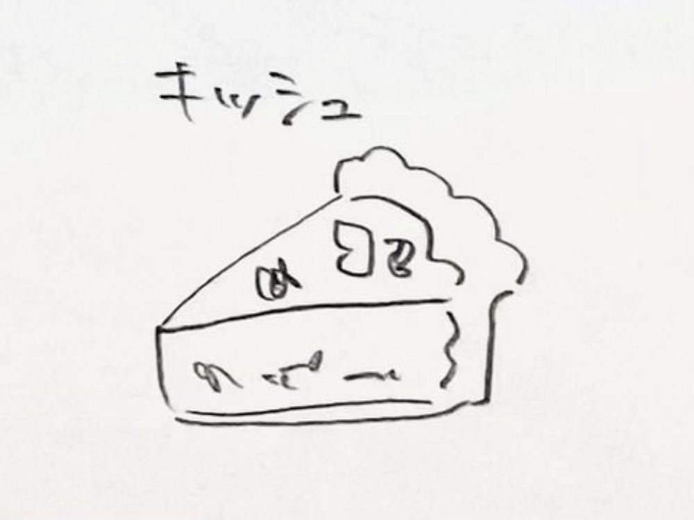 • ゆる~く描かれたキッシュのイラスト。しかし「これがこうなる!」完成した作品に「ええええ可愛い!!」「そうはならんやろ」
