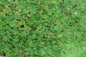 足を止めて確認すると、それは観賞用水草として知られる「アマゾンフロッグピット」でした。自然の中で見かけること自体が珍しく、思わず目を引く光景だったようです。