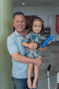 1歳の誕生日当日は予定が合わなかったことから、少し早めのお祝いを兼ねて、2024年の夏にじいじが沖縄まで会いに来てくれたのです。