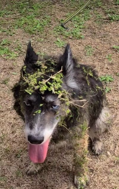 「犬が緑に変わるの初めて見た」遊びから帰ってくると体中が大変なことに…!? “小さい秋を見つけた犬”が可愛い…!