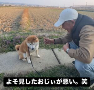 87歳のおじいちゃんと、5歳の富士くんが散歩していたときのこと。おじいちゃんは富士くんのおやつを取り出し、目の前に置いて「待て」と声をかけました。